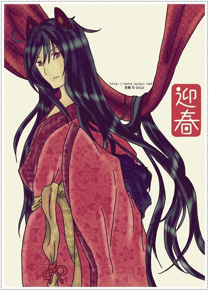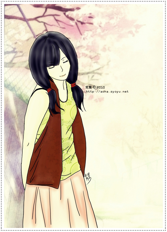 改變了照片中的髮色、髮型,還有服裝的色彩、花紋,再加上偷懶拿別張現成的圖來當背景,然後就成了這個樣子。